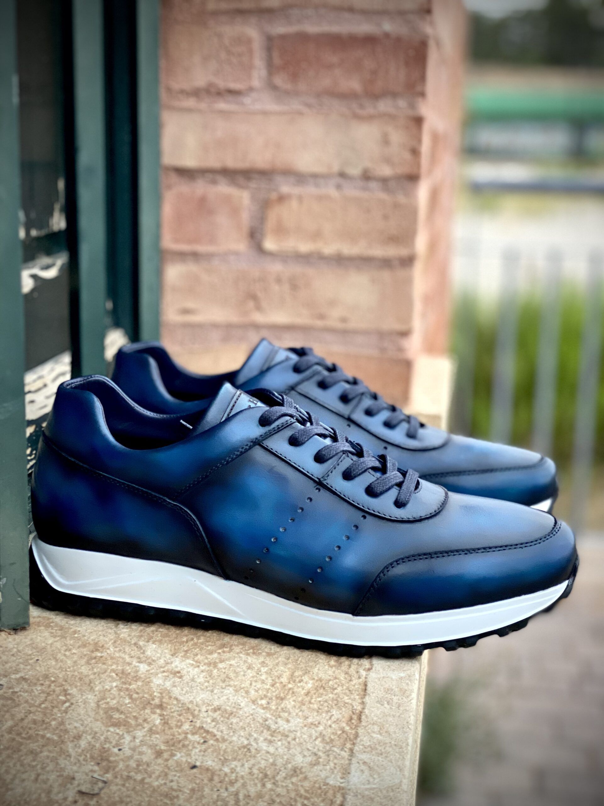 The Munch Navy style is a sneaker shoes hand painted in different shades of navy blue color.