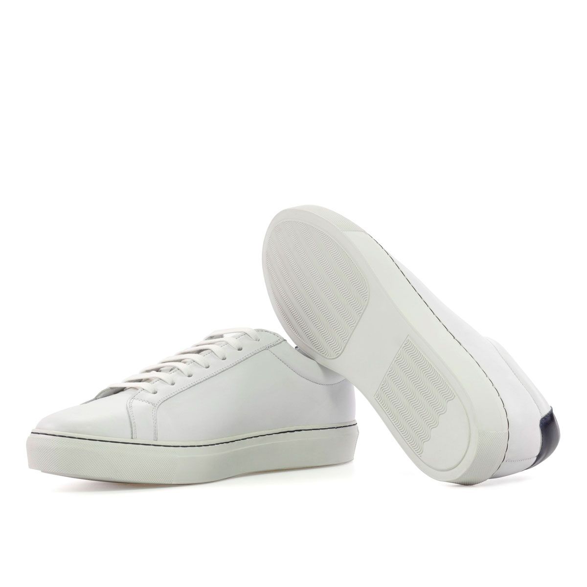 The style Moreau White & Navy is a sneaker shoe handcrafted in white color.